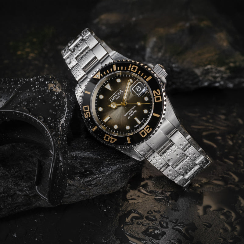Es ist nicht leicht, eine Taucheruhr zu finden, die gleichzeitig funktional und elegant ist. Taucheruhren müssen in erster Linie robust, gut ablesbar und vor allem wasserdicht sein. Dies führt meist zu sehr großen und markanten Uhren – leider nicht immer anzugtauglich. Anders die Ternos: Wie selbstverständlich überzeugt sie mit ihrem klassischen Design – gleichermaßen passend zum Taucher- und Business-Anzug. Dabei wurde keineswegs auf Funktionalität verzichtet. Die Ternos ist seit Jahren eines der beliebtesten DAVOSA-Modelle.