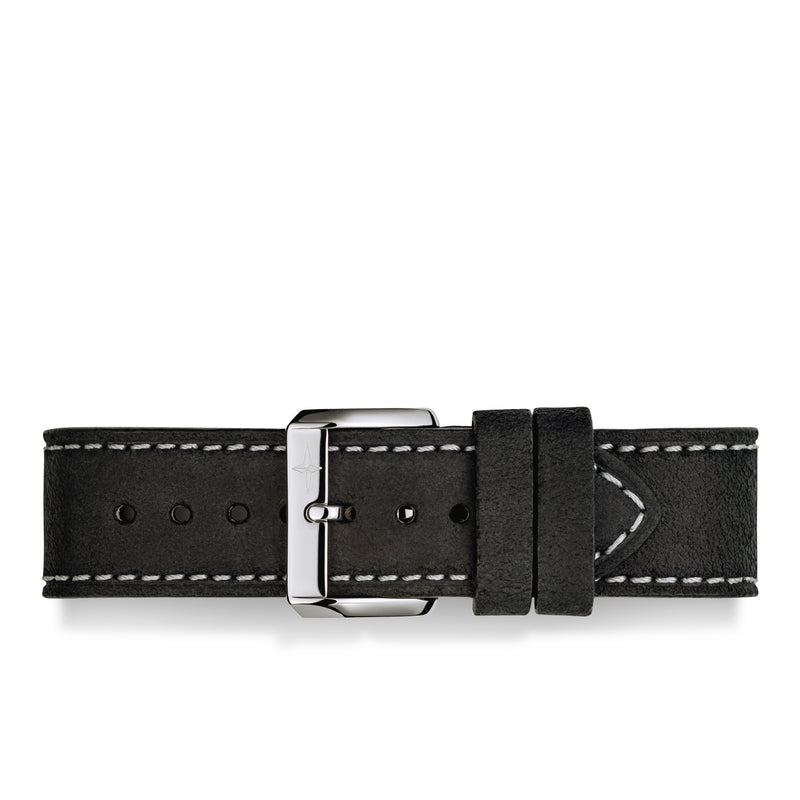 Schwarzes Rindlederband mit weißer Kontrastnaht und Dornschließe