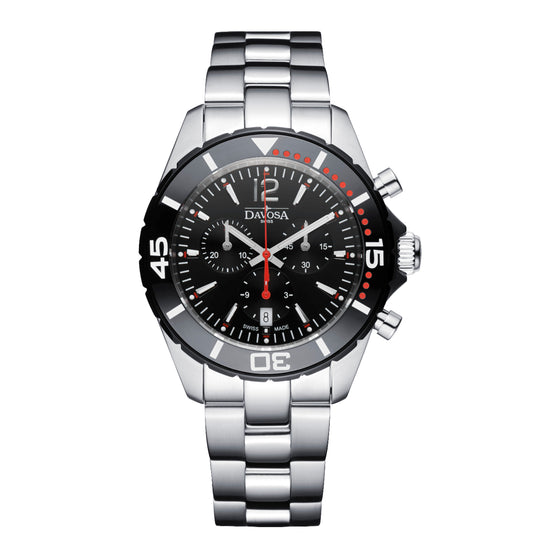 Stunden, Minuten, Sekunden, Datum, Chronograph, Datumschnellschaltung, Sekunden-Stopp