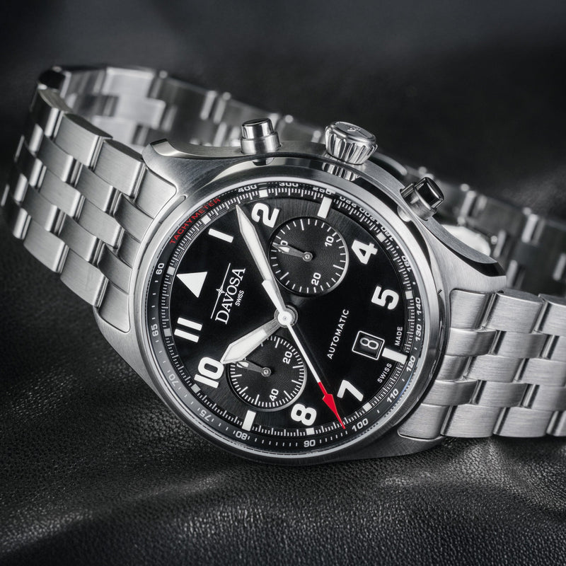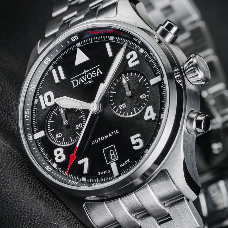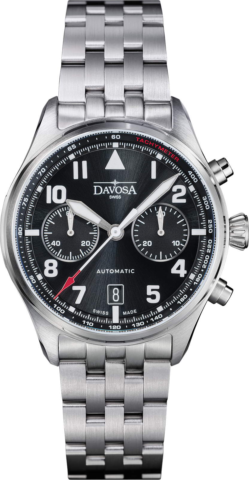 Auch technisch erweist sich der Newton Pilot Chronograph auf allerhöchstem Niveau: absolute Zuverlässigkeit garantiert das fein finissierte DAV 3052 auf Basis SW510 mit eine Gangreserve von circa 60 Stunden und einer sehr guten Ganggenauigkeit.