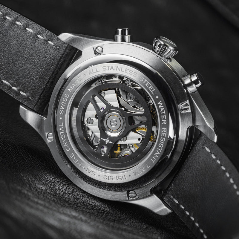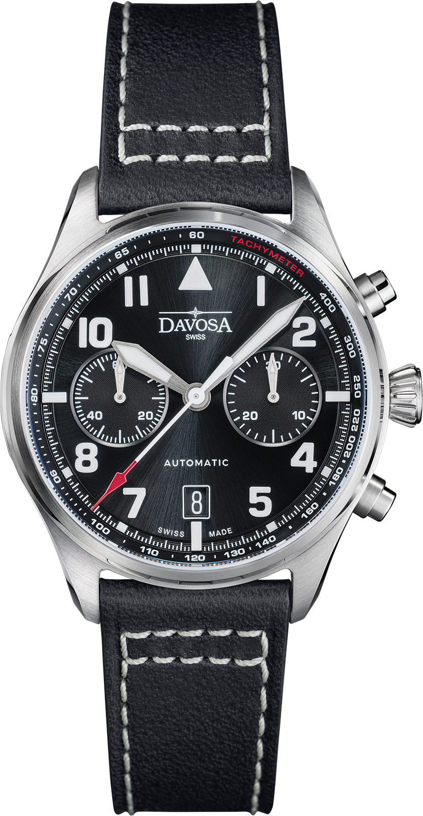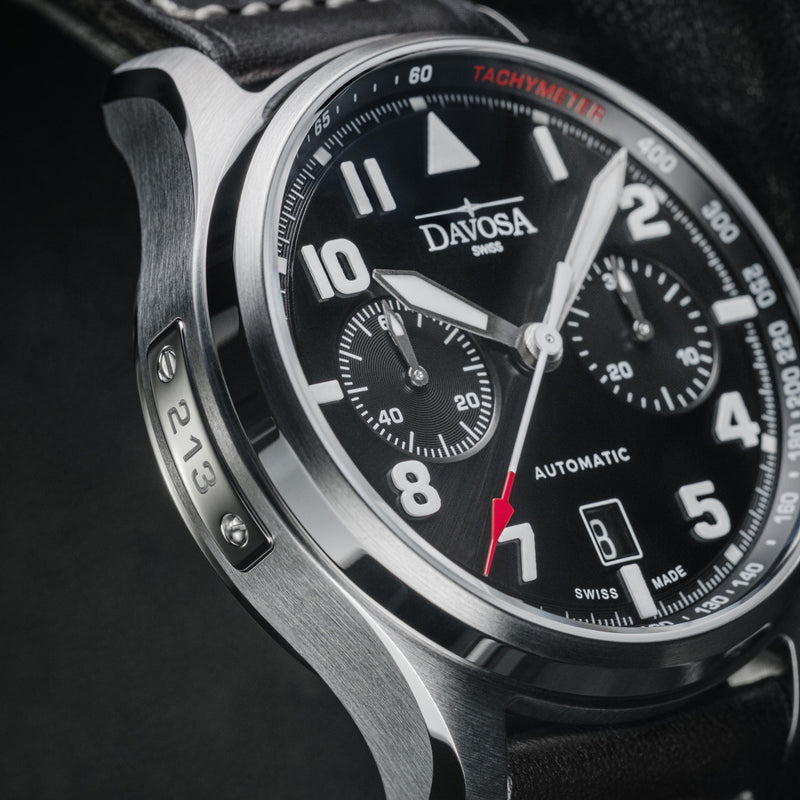 Auch technisch erweist sich der Newton Pilot Chronograph auf allerhöchstem Niveau: absolute Zuverlässigkeit garantiert das fein finissierte DAV 3052 auf Basis SW510 mit eine Gangreserve von circa 60 Stunden und einer sehr guten Ganggenauigkeit.