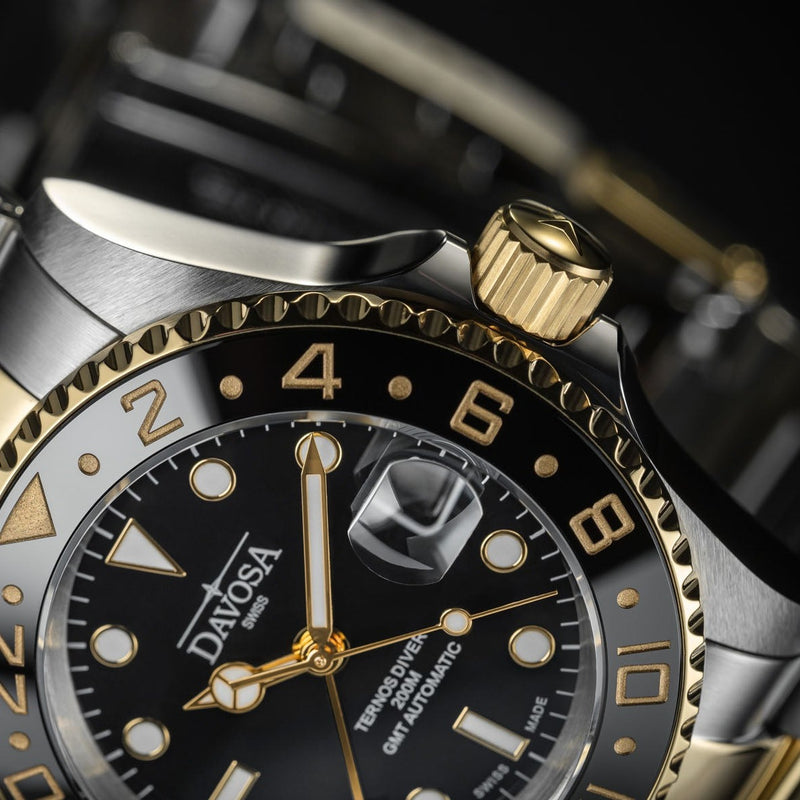 Stunden, Minuten, Sekunden, Datum, Datumschnellschaltung, Sekunden-Stopp, zweite Zeitzone