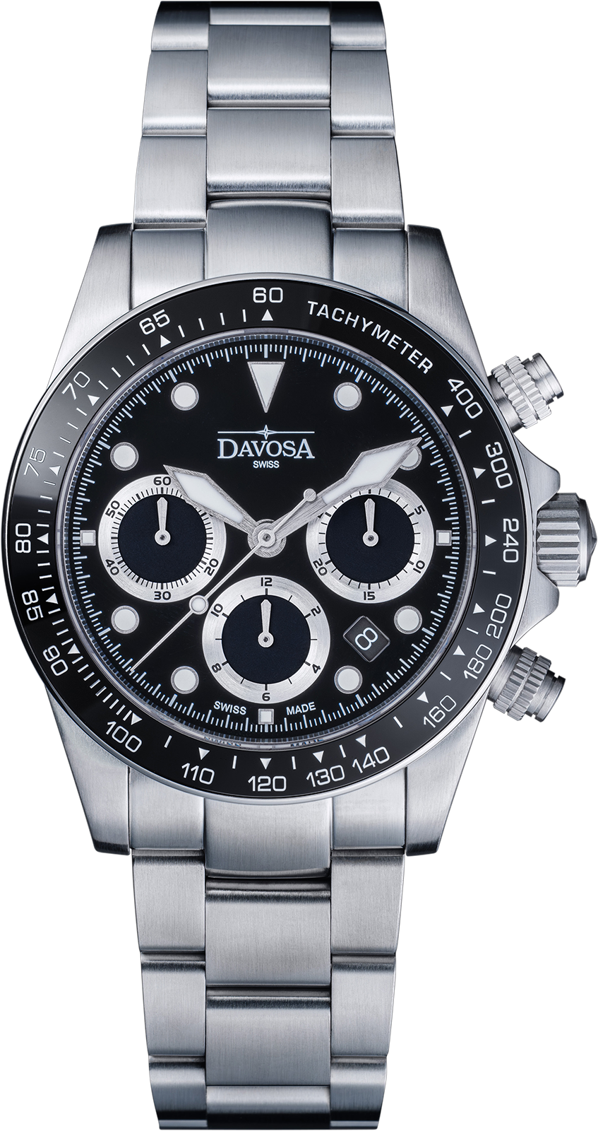 Chronographenfunktion, Datum und Tachymeterskala geben die volle Kontrolle. Messen Sie Zeiten oder kontrollieren Geschwindigkeiten zuverlässig. Kombiniert mit dem sportlich-maskulinen Look entsteht eine Uhr, die Erwartungen übertrifft.