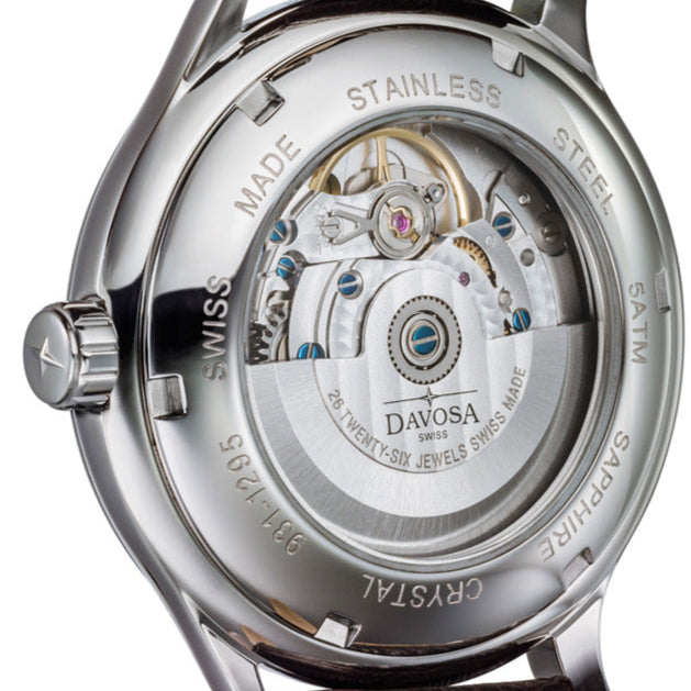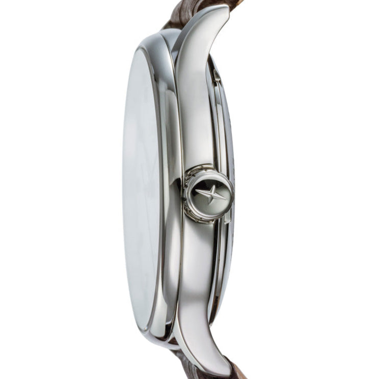 棕色小牛皮表带搭配鳄鱼纹、同色调缝线和针扣。20 毫米的宽度适配 Ternos、Classic Automatic, Vanguard、Gent's Classic Quartz 等款式。22 毫米的宽度则适配 Ternos Professional、Military、Simplex、Heritage Quartz、Vintage Rallye Pilot 等款式。同时,该表带还包含 XL 码款式。凸耳宽度:
